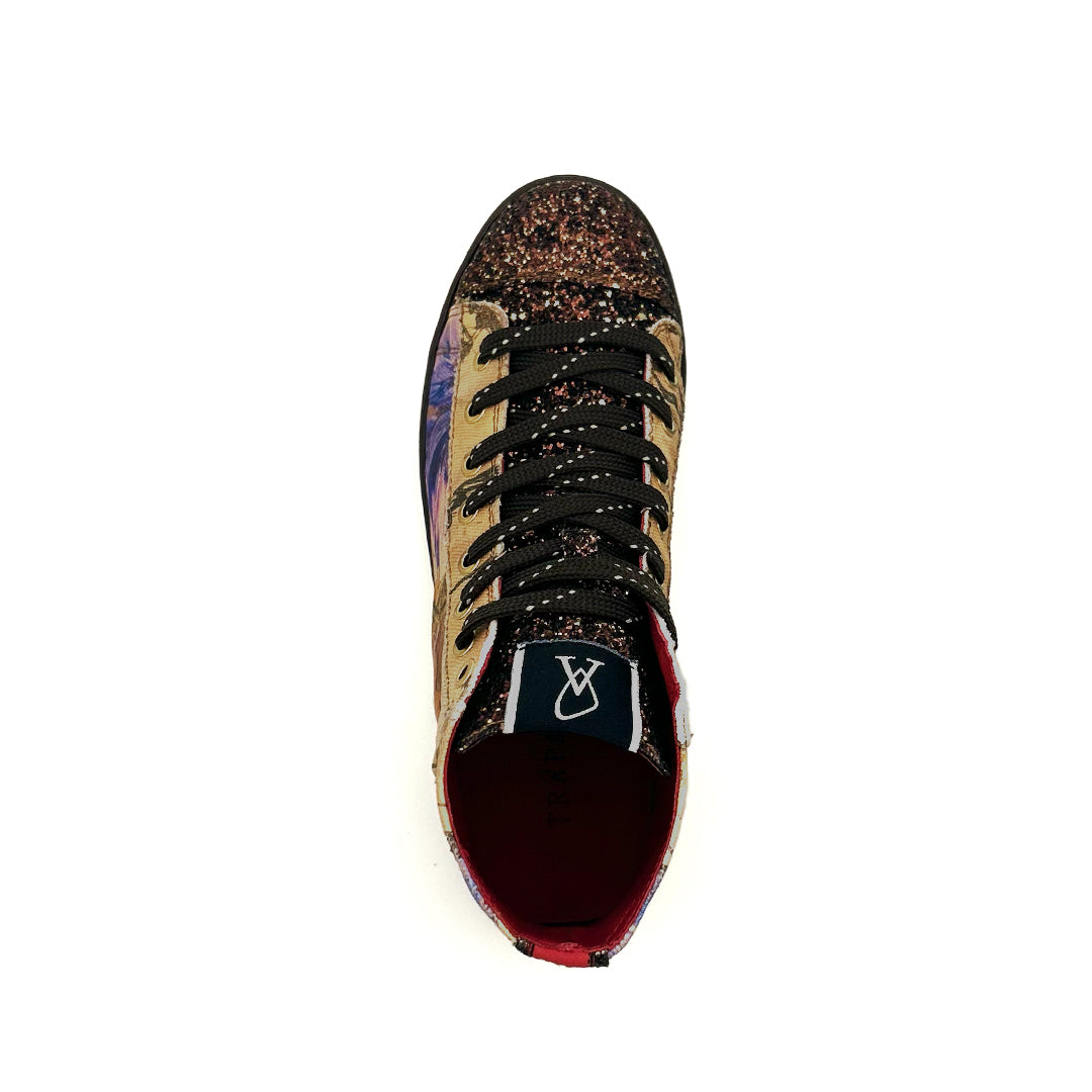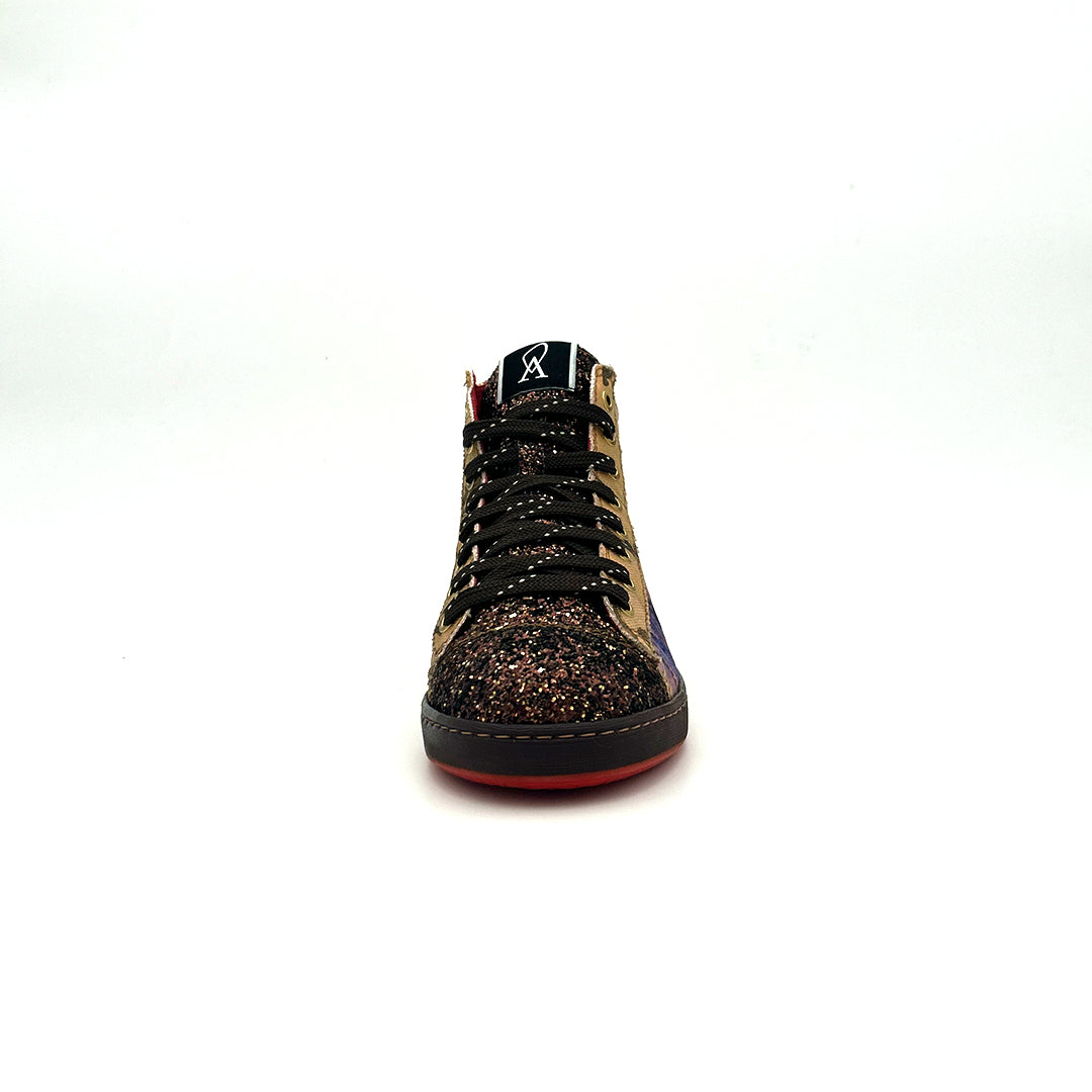 - Brown glitter toe and tongue.