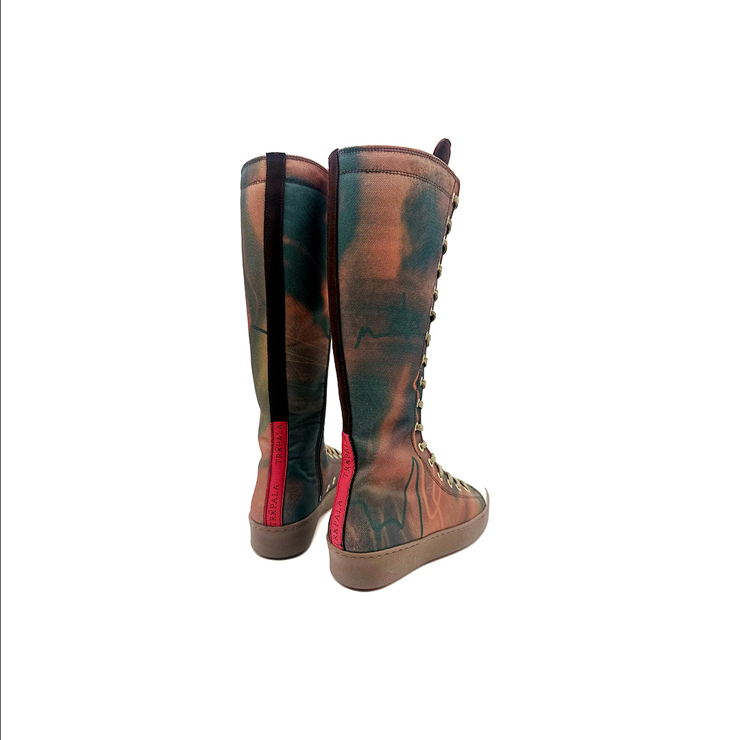- Suela marrón de 5 cm de altura con pisada en color rojo TRÁPALA.