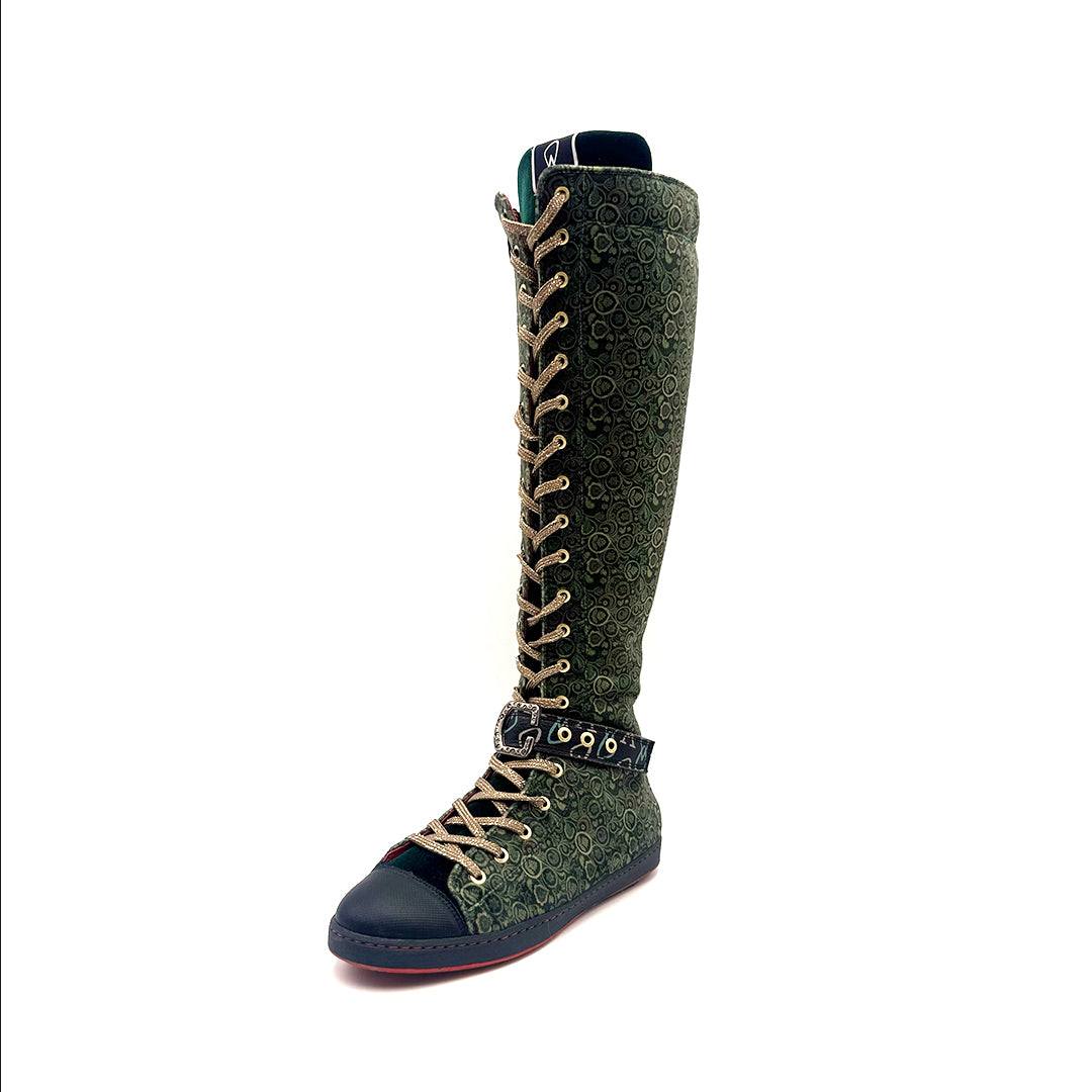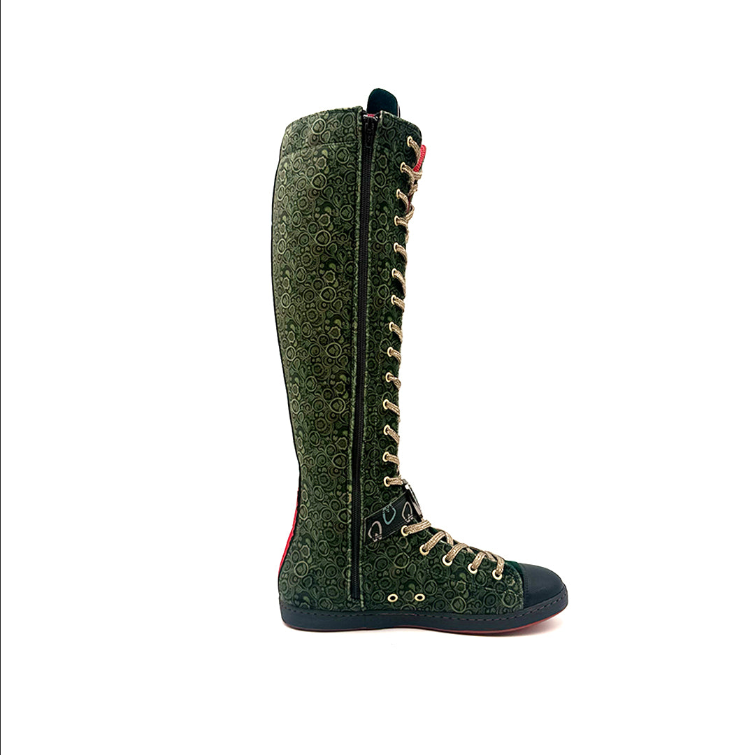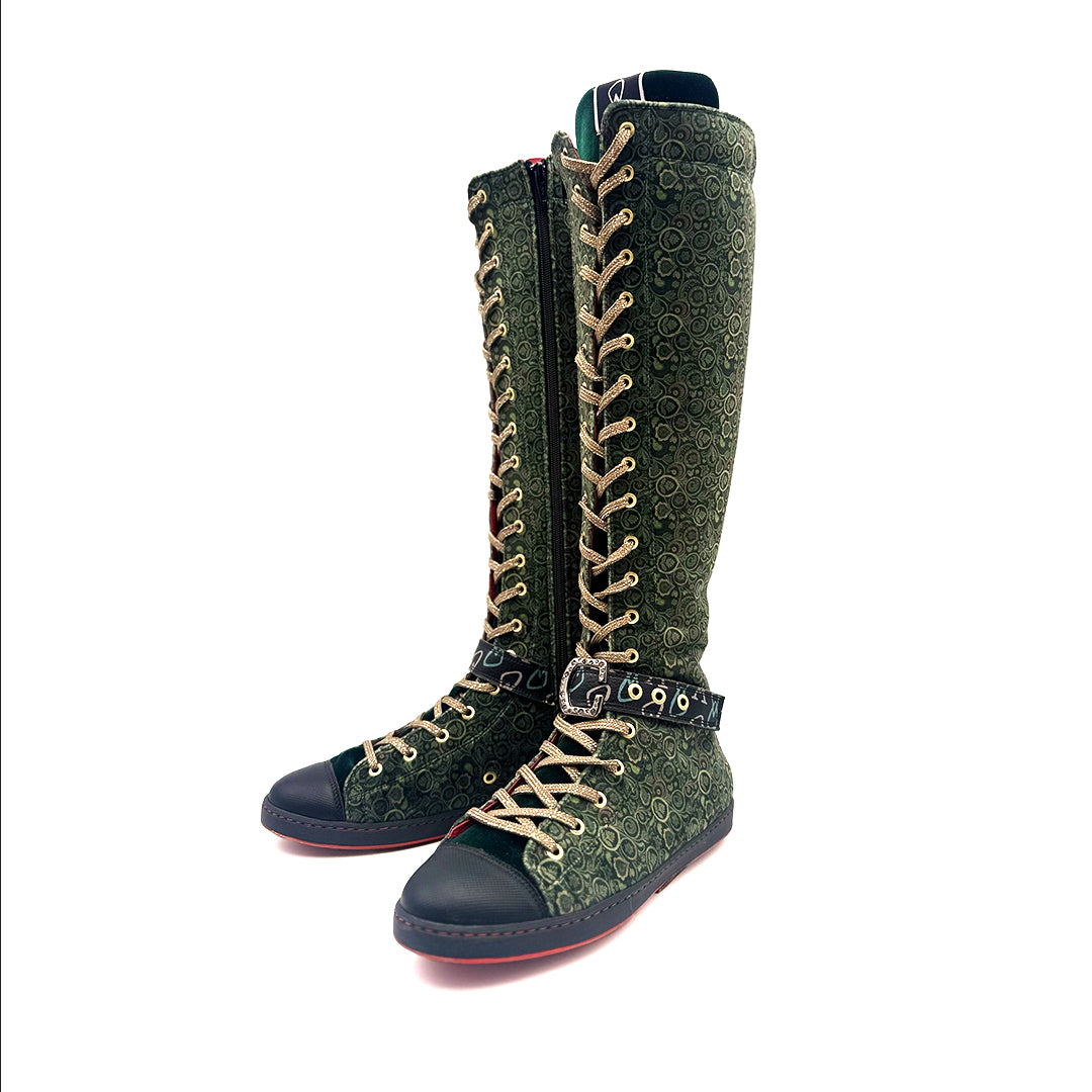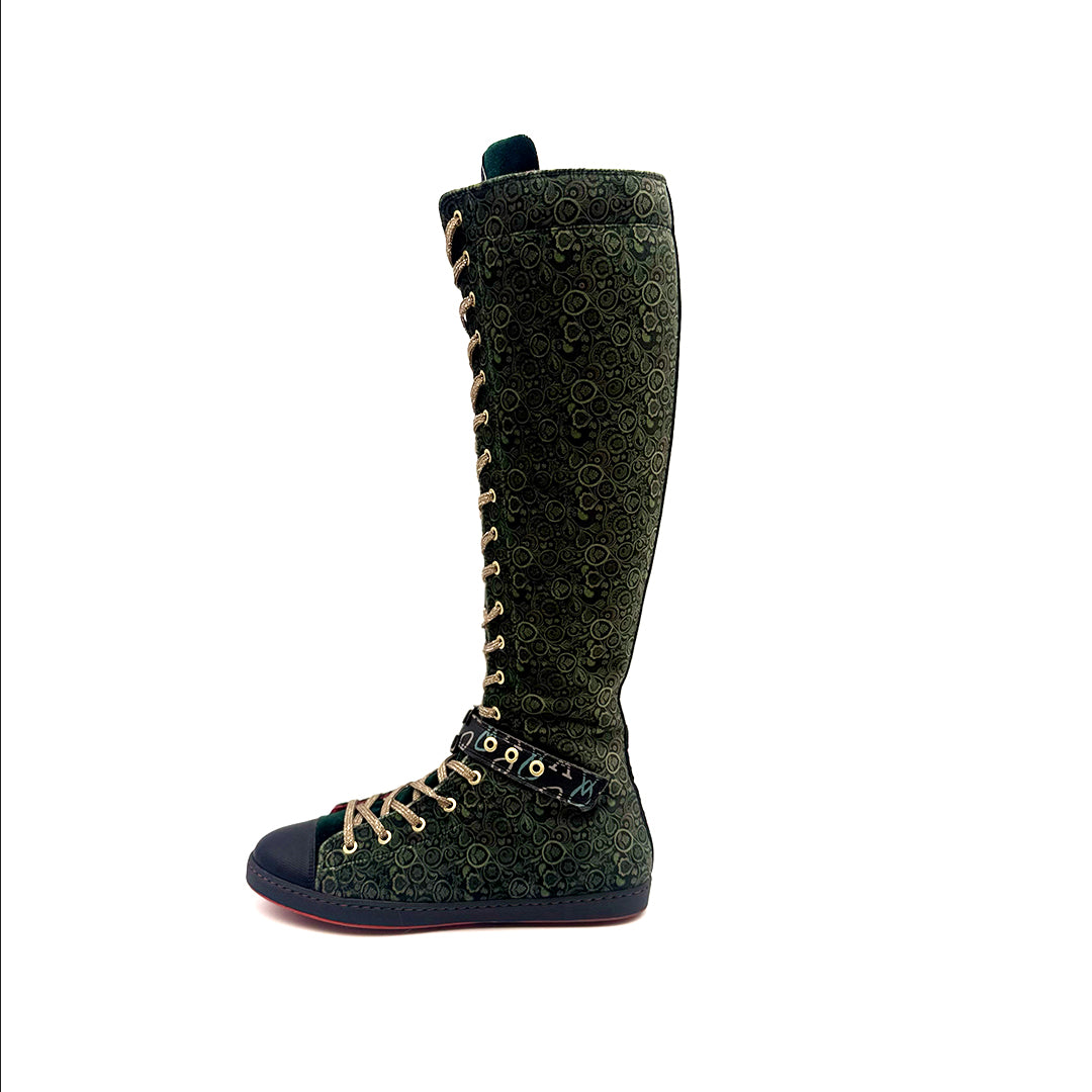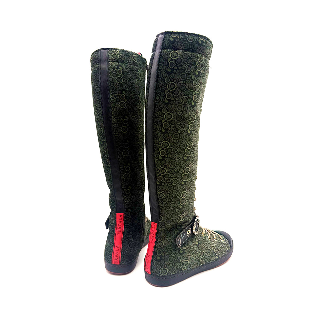 - Fabricadas terciopelo con lengüeta en color verde.