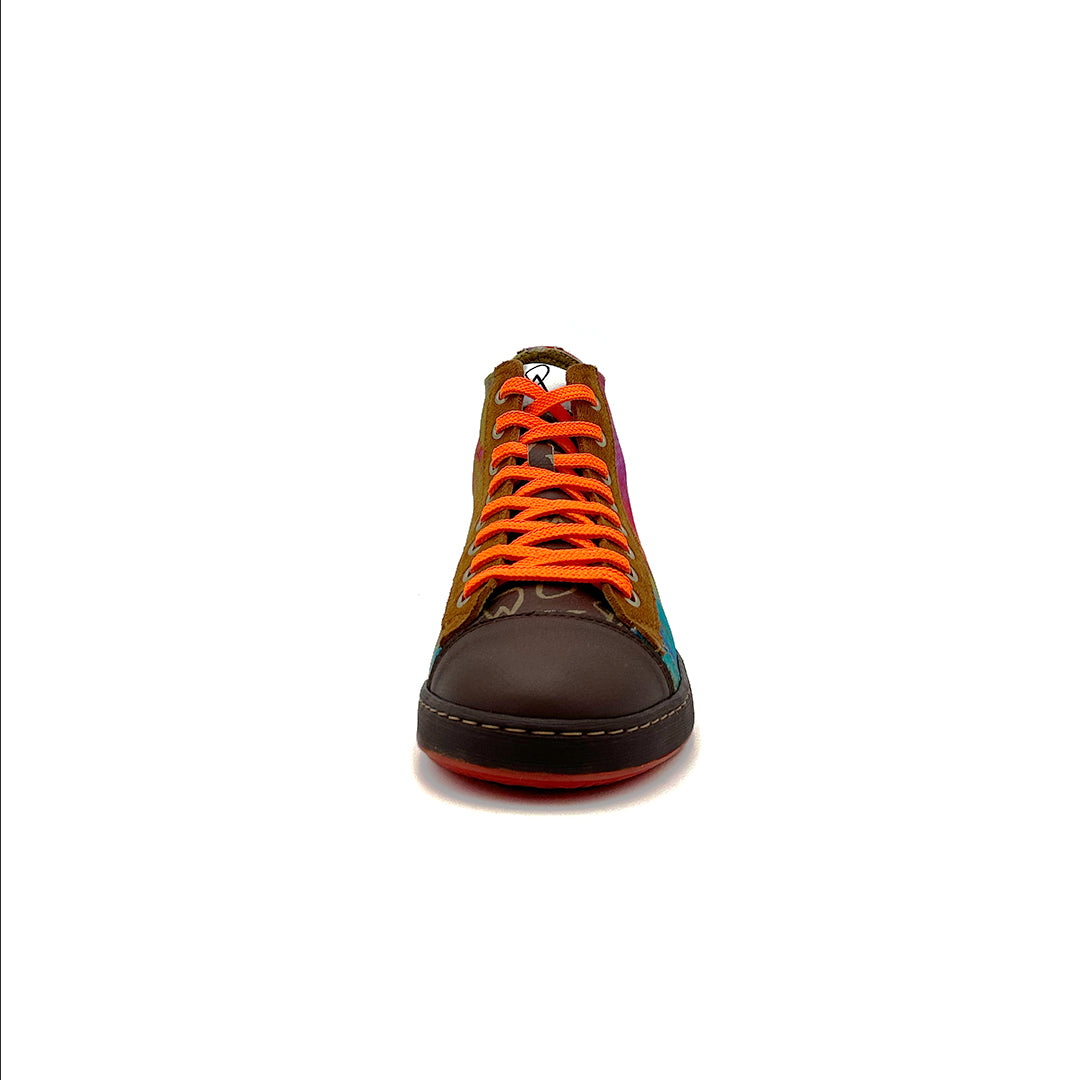 Suela color chocolate de 3 cm con pisada en color rojo TRÁPALA.