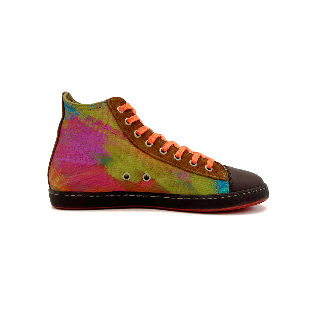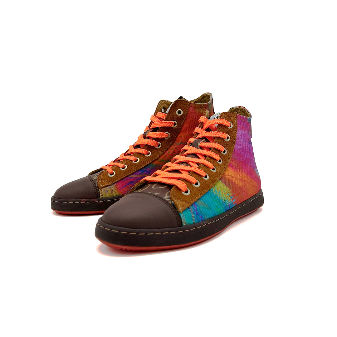 - Hechas de serraje natural en color café (subproducto procedente de la industria alimentaria) y trazos procedentes de la obra de Casadevall.