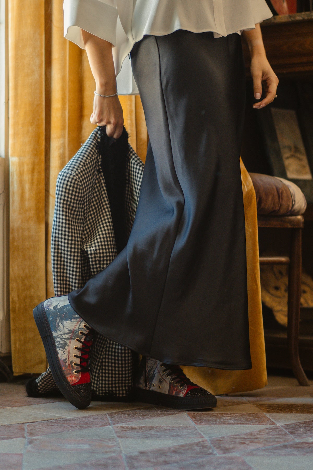 - Diseñadas a partir de trazos de obras de arte seleccionadas y trabajadas de forma digital sobre textil para poder garantizar una mayor durabilidad.