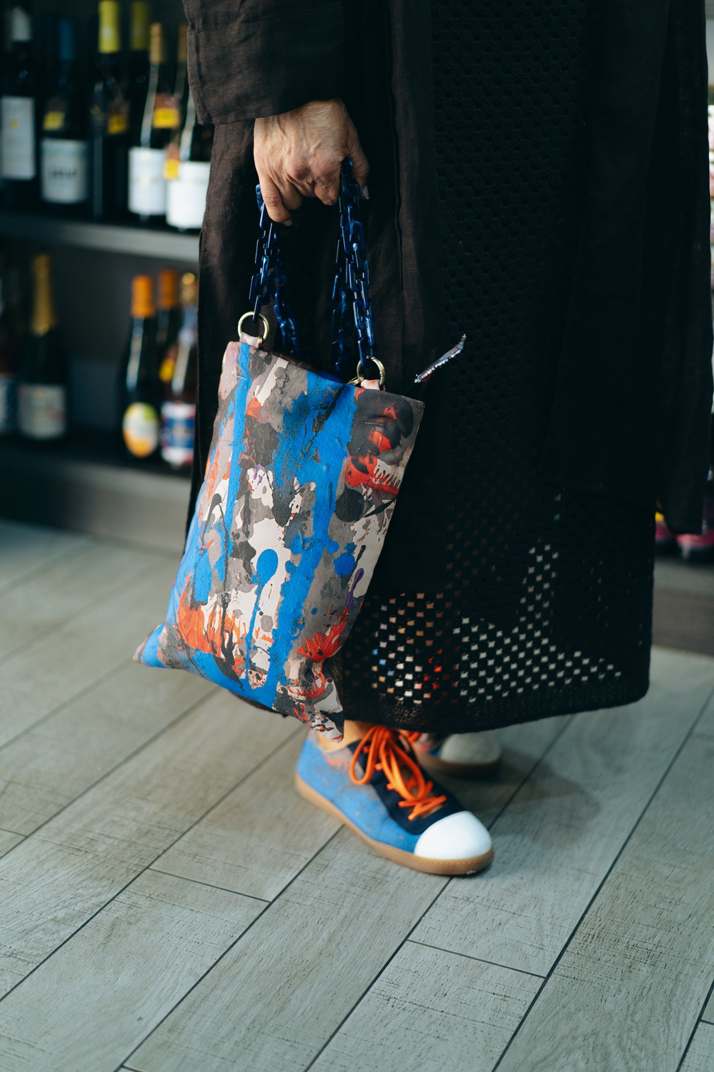 - Fabricado en nuestro trenzado italiano multicolor y en piel blanca grabada (a juego con los modelos Sneaky Treccia Caramelo y Ayre Caimano).