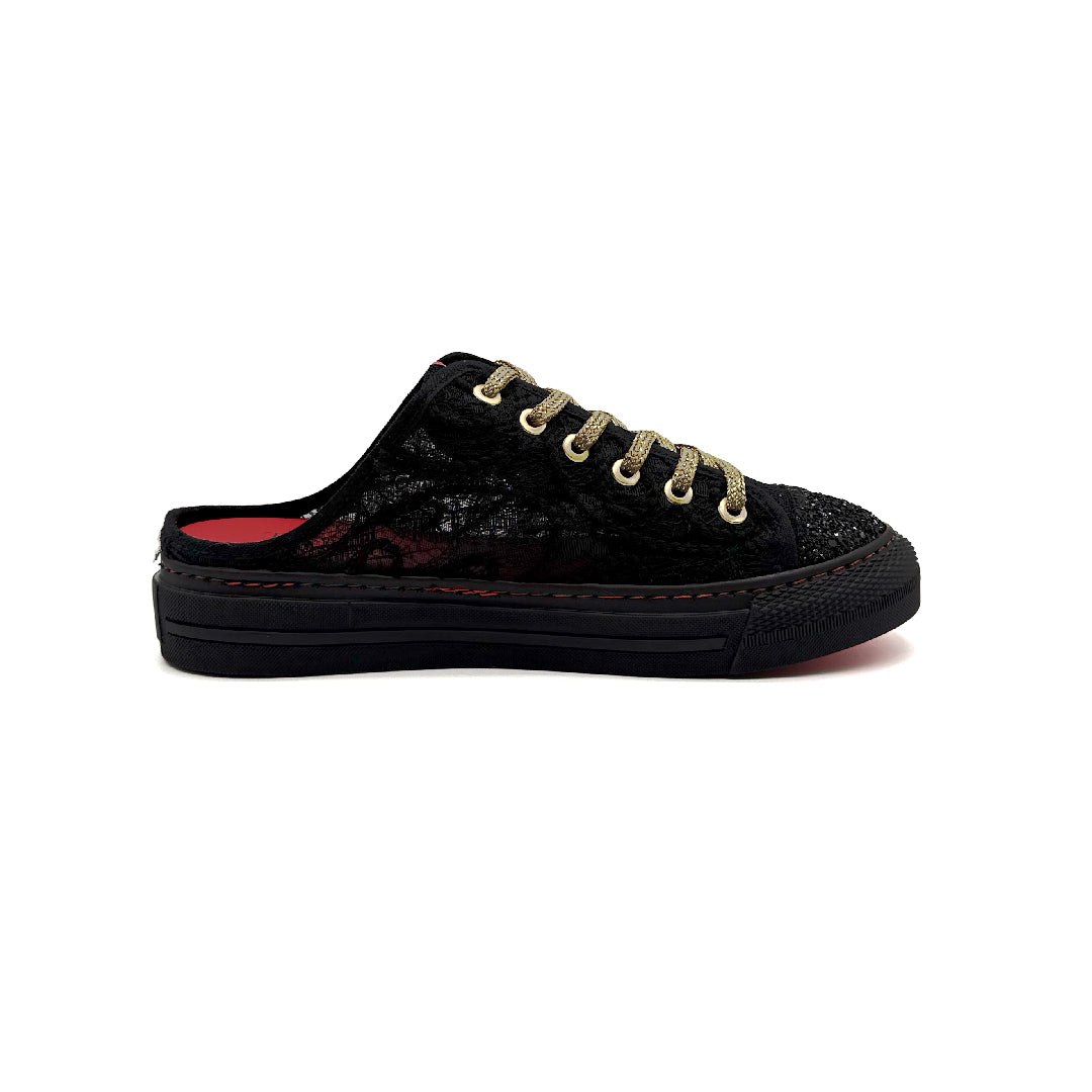 - Fabricadas en material de encaje negro.