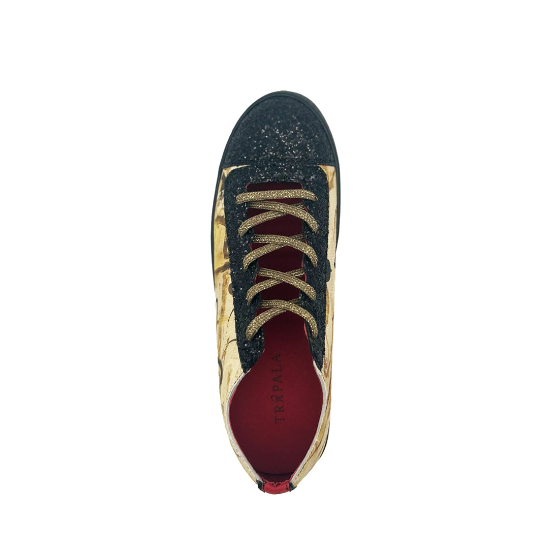 - Suela negra de 5 cm de altura con pisada en color rojo TRÁPALA.