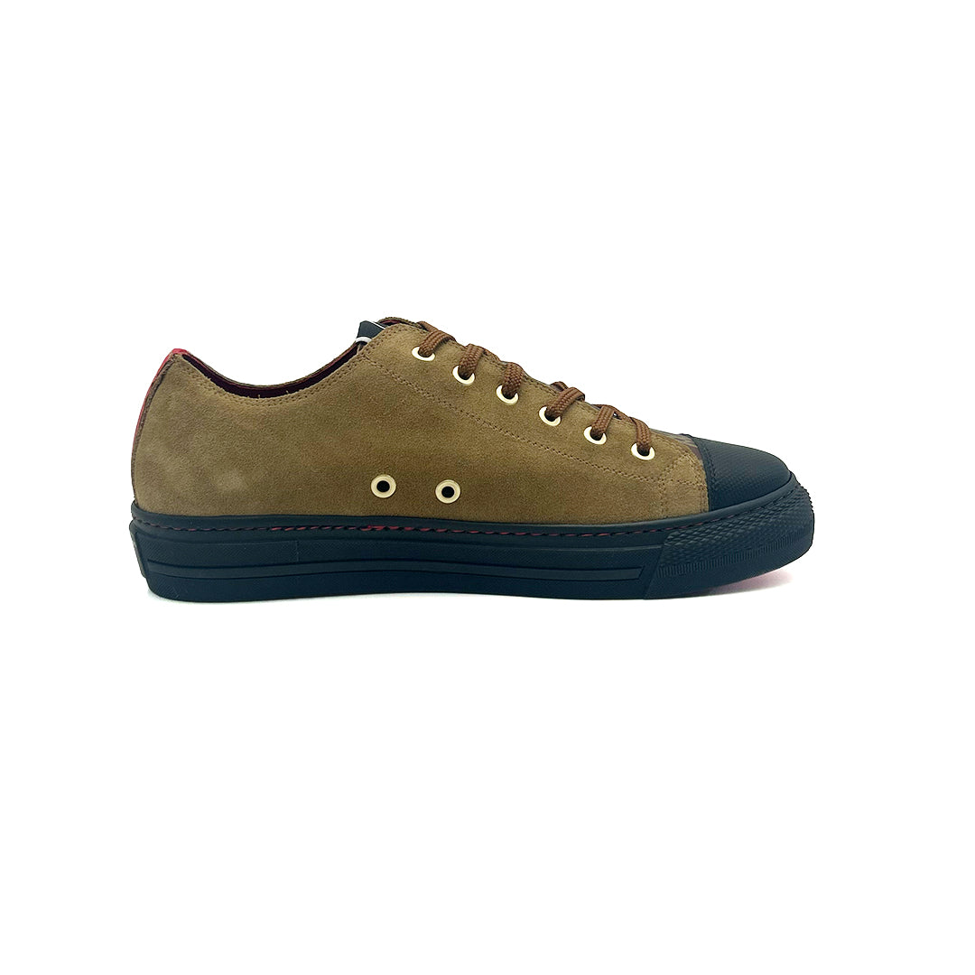 - Hechas de serraje natural en color caqui (subproducto procedente de la industria alimentaria) y nuestro Brandy de la casa en color chocolate en piel labrada de la mejor calidad.