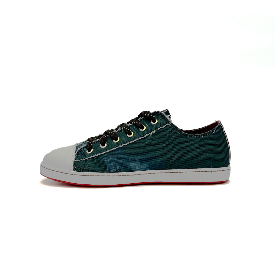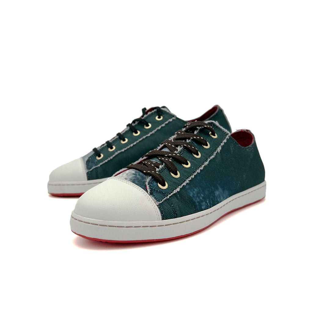 - Hechas de textil piqué en color verde botella (subproducto procedente de la industria alimentaria).