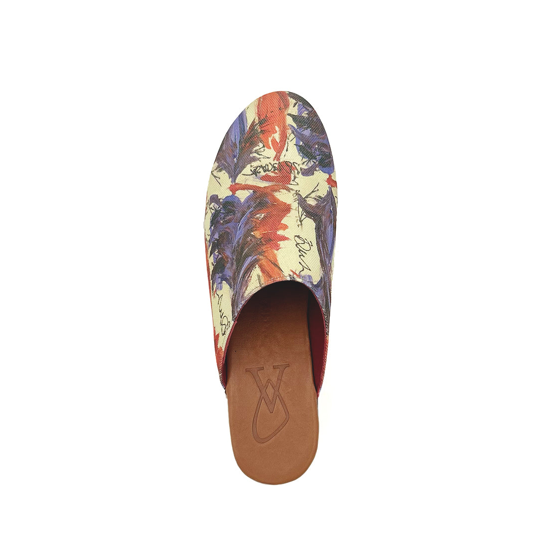 Zueco "Cremisi", perteneciente a la obra pictórica "Antología de la Danza" de la artista Casadevall.